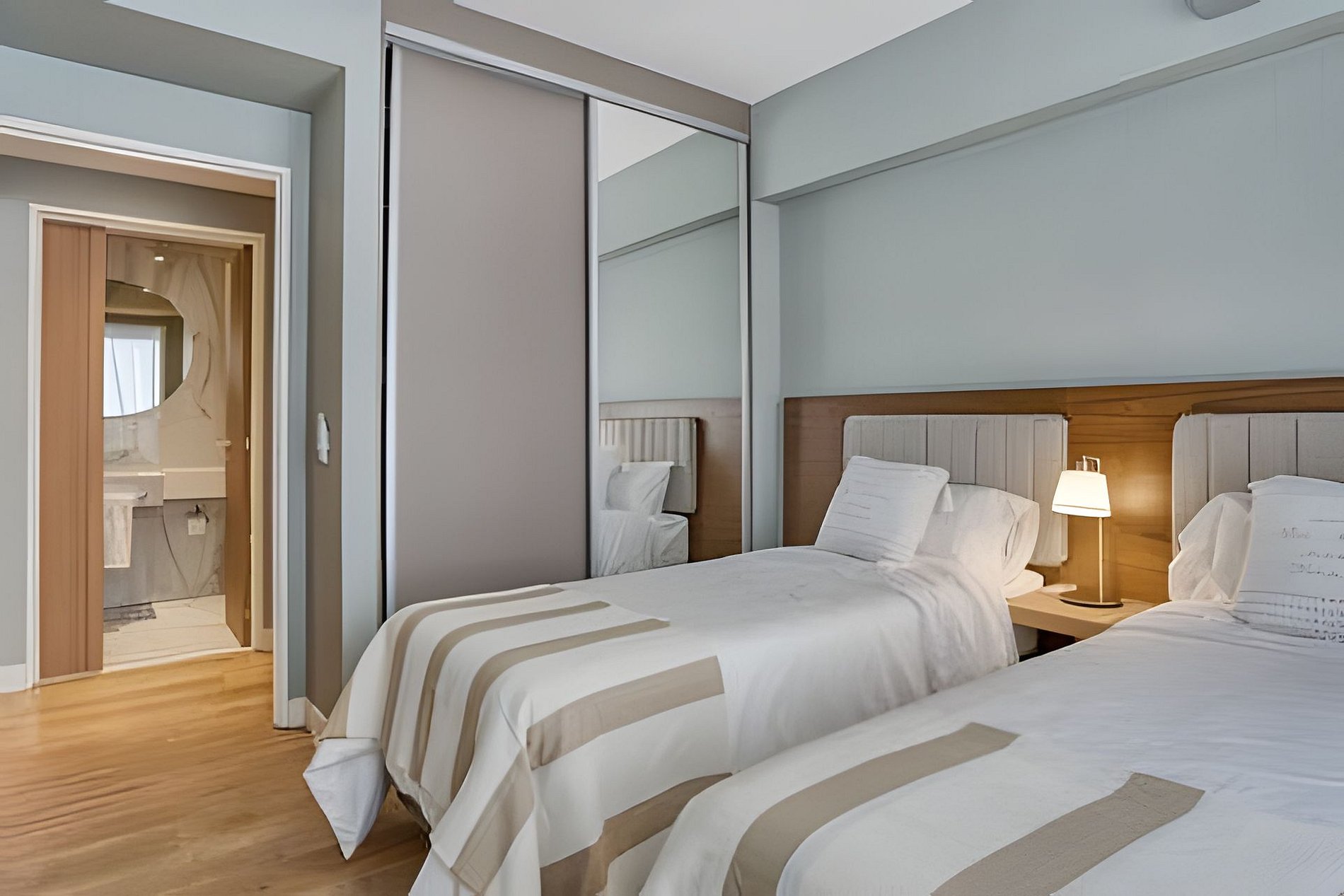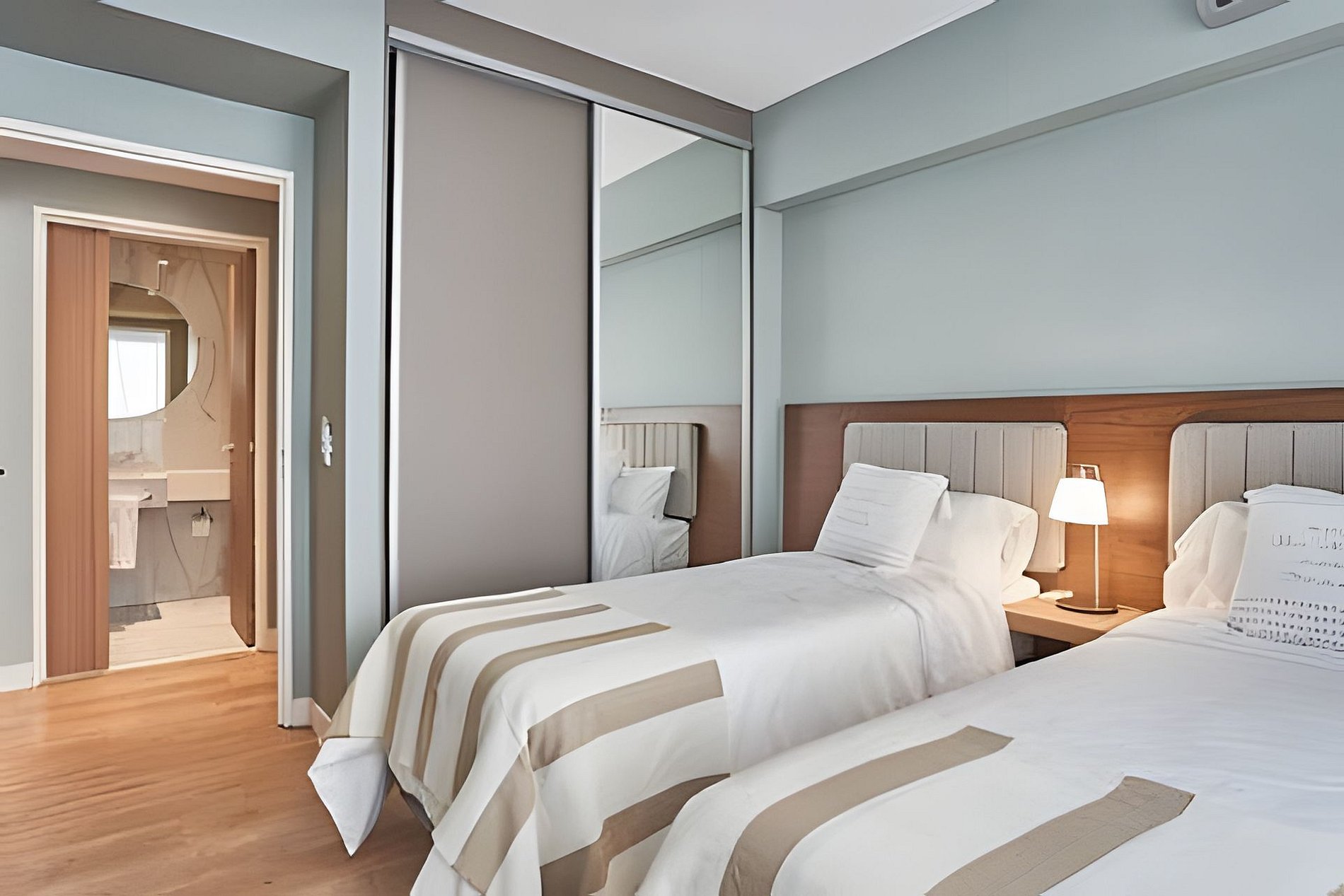 ¡Bienvenido a nuestro hermoso apartamento en Palermo! La habitación principal cuenta con una cómoda cama queen y un baño privado en suite para su conveniencia. En la segunda habitación, encontrarás dos camas individuales, lo que la convierte en una opción ideal para familias o amigos. Este elegante espacio incluye dos lujosos baños de mármol, brindando un amplio confort para todos los huéspedes. Mantente conectado con Wi-Fi de alta velocidad y disfruta del entretenimiento en el televisor de pantalla plana en la sala de estar y en la habitación principal. El amplio espacio de armario hace que este apartamento sea ideal para estancias prolongadas. La unidad idéntica al otro lado del pasillo es perfecta para grupos más grandes que desean quedarse juntos, permitiendo que todos disfruten de su propio espacio mientras están cerca. ¡Experimenta comodidad y facilidad en una ubicación privilegiada en el corazón de la ciudad!