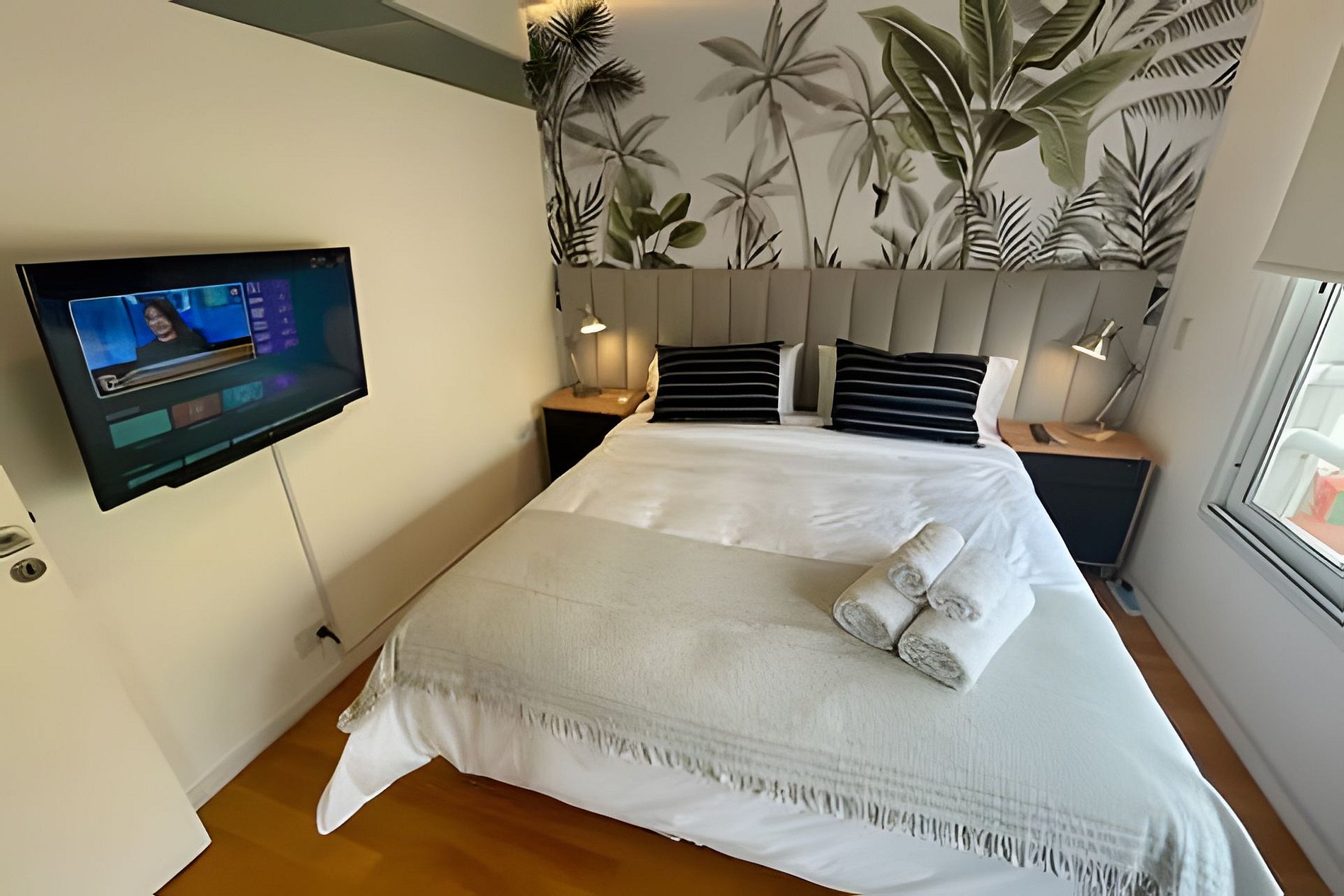 Departamento recientemente equipado en torre de lujo en Palermo Soho. El dormitorio principal tiene una cama king, y el segundo dormitorio ofrece dos camas individuales o una cama queen. El living con sofá cama presta acceso a una amplia terraza privada calefaccionada con una pequeña parrilla eléctrica. Disfruta de una cocina totalmente equipada, lavasecarropas, WiFi de 300mbps y Smart TVs. El edificio cuenta con seguridad 24h, piscina, parrillas, gym y terraza con piscina climatizada y jacuzzi.