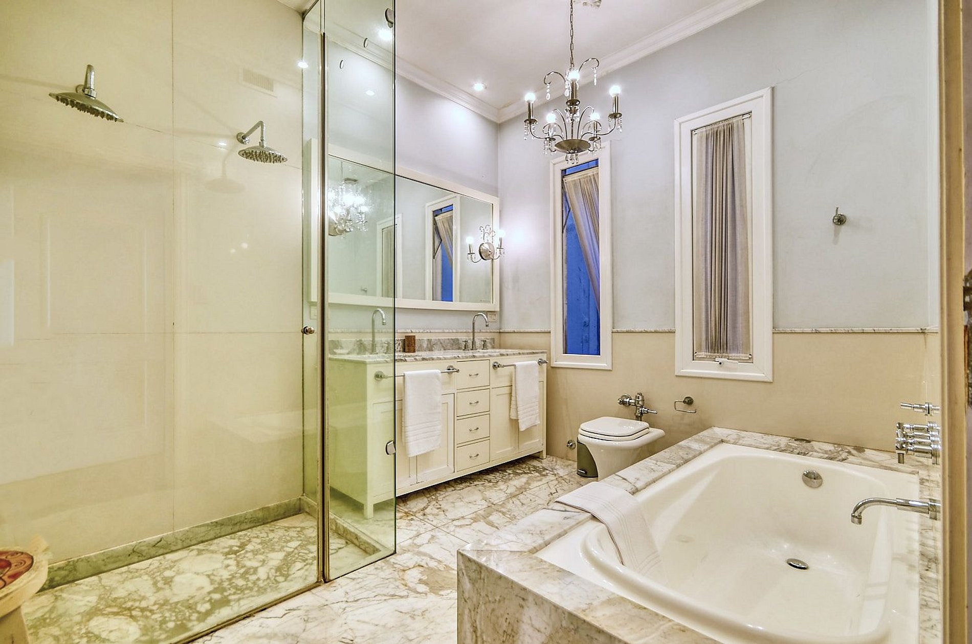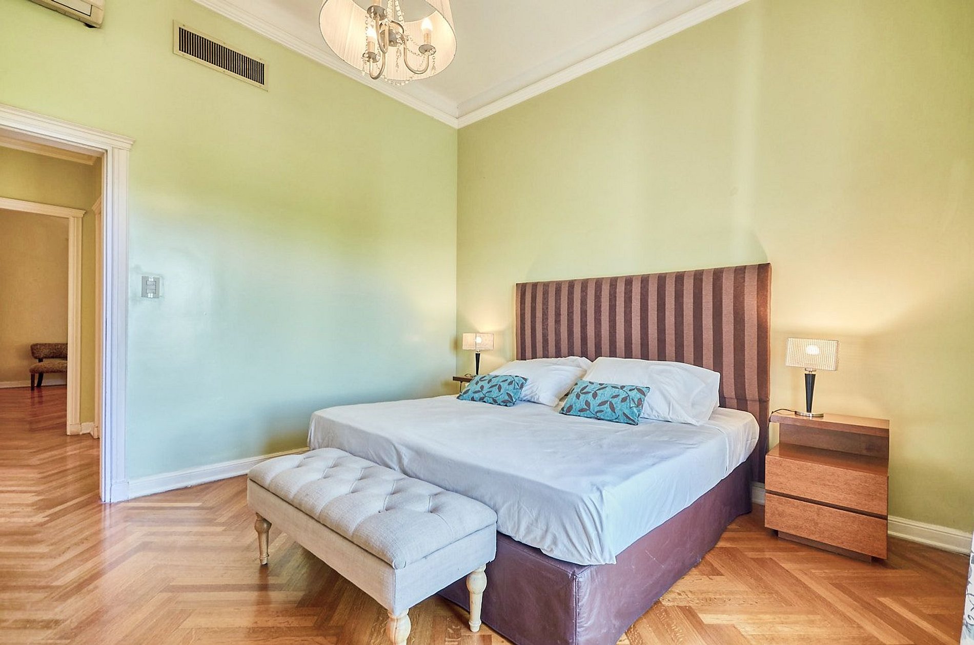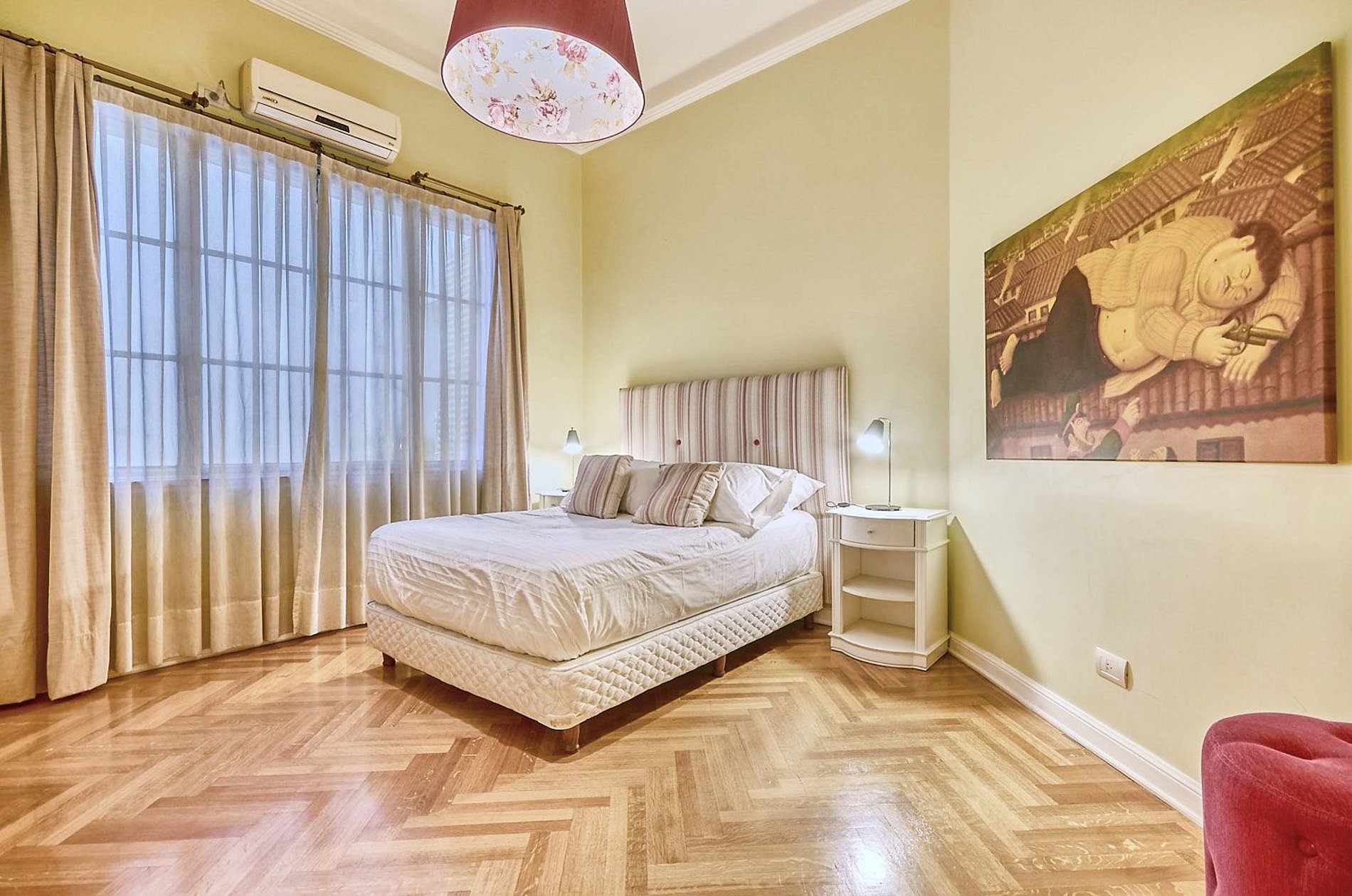 Con 300 m² de superficie, esta residencia combina la elegancia clásica de los techos altos, los pisos de parquet y los detalles de época con el confort y diseño contemporáneo que todo viajero busca. Cuenta con cuatro amplios dormitorios: la suite principal ofrece una cama king y un baño completo de mármol con bañadera y ducha; una segunda suite con cama queen y baño privado; y otras dos habitaciones, cada una con cama queen y amplios closets embutidos, que comparten un baño completo con bañera.